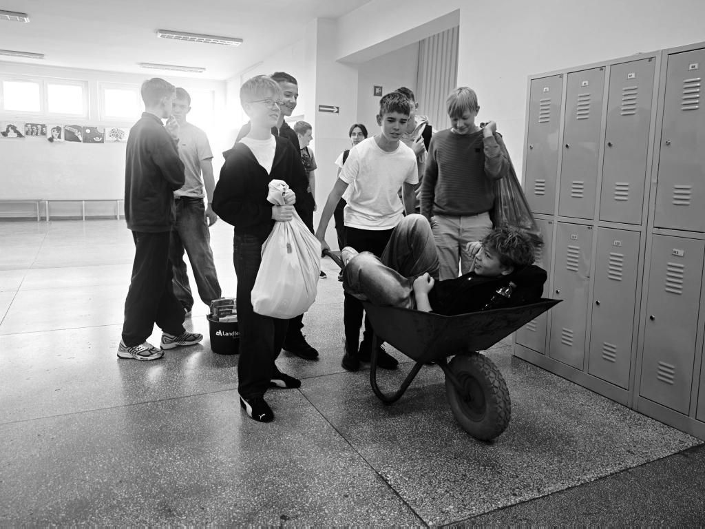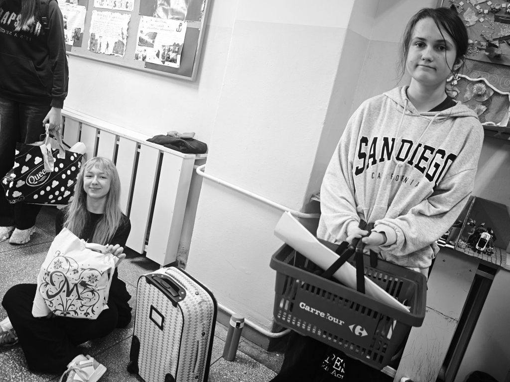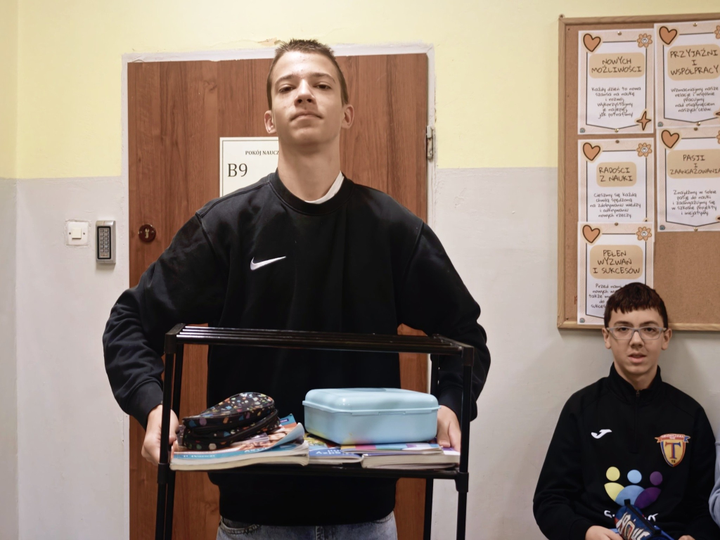 Z samego rana pojawili się uczniowie (i ich rodzice – pełni kreatywności 💡), niosąc książki i zeszyty w najróżniejszych przedmiotach, które z plecakiem nie mają nic wspólnego.
