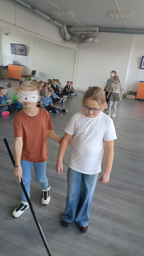 wcieliły się w rolę osoby niewidomej oraz jej przewodnika, ucząc się, jak pomagać w bezpieczny i właściwy sposób,
