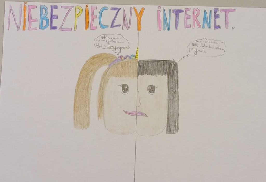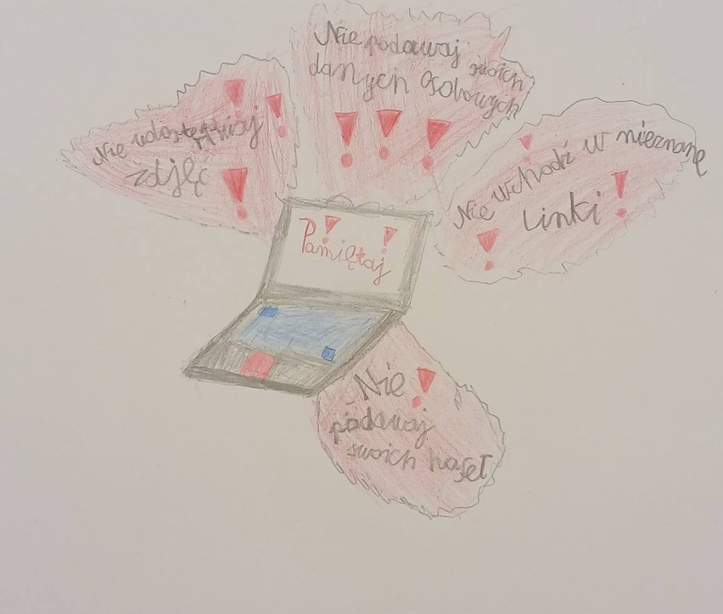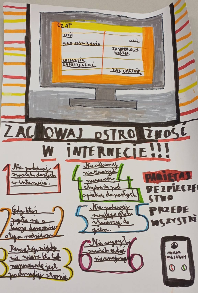 Prace młodych twórców już wkrótce będzie można zobaczyć w sali informatycznej, gdzie z pewnością zwrócą uwagę wszystkich uczniów i przypomną o zasadach bezpiecznego korzystania z internetu.