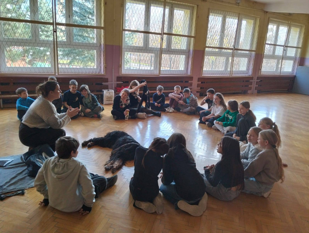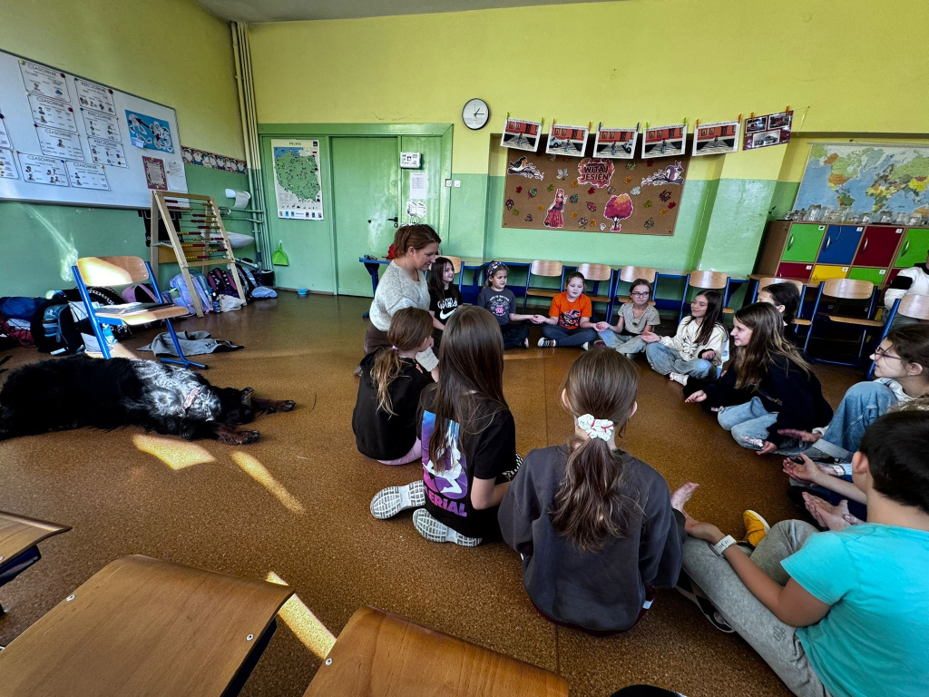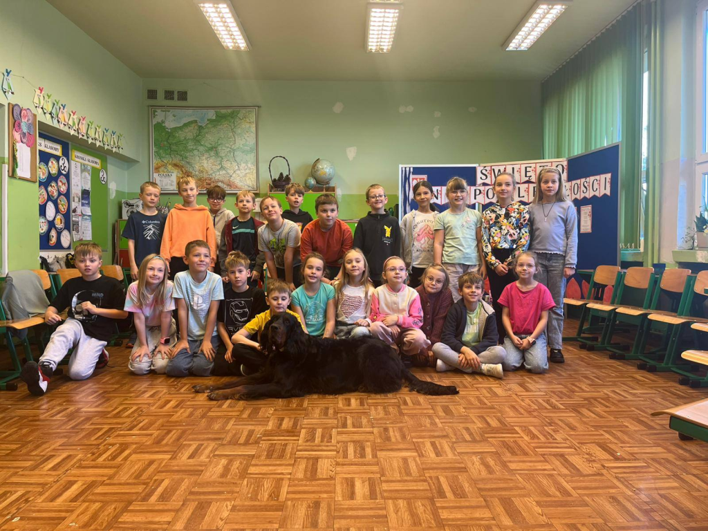 Dzięki akcji w naszej szkole pies terapeutyczny Ben powoli czuje się jak u siebie — wszystkie klasy edukacji (nie tylko wczesnoszkolnej) mają już za sobą niesamowite zajęcia, pełne emocji, radości i ważnych rozmów o empatii, odpowiedzialności i relacji z pupilem.